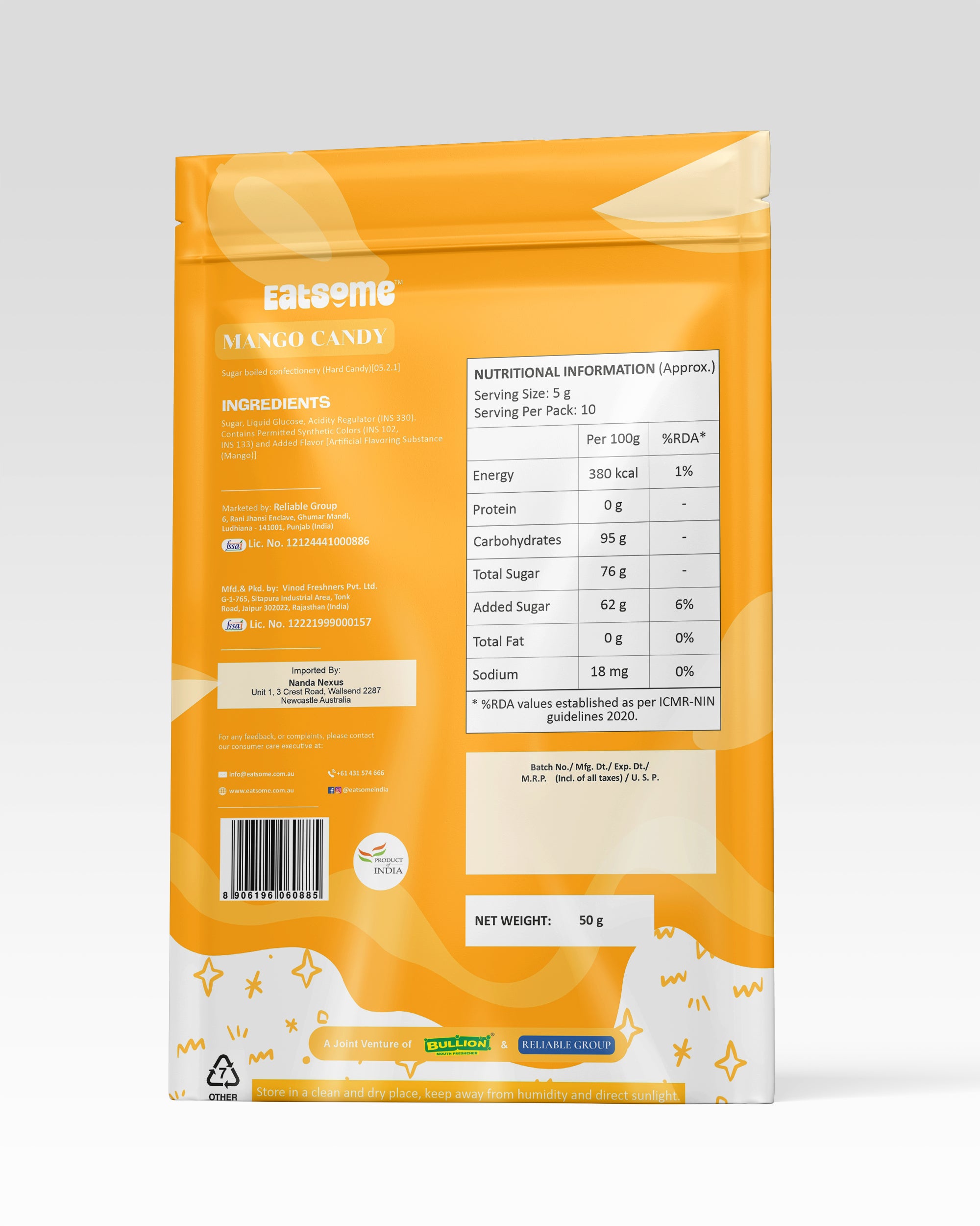 Mango isn’t just a fruit – it’s a feeling! Introducing EATSOME Mango Candy, the perfect tropical treat to brighten your day. Every candy is infused with the juicy flavor of Mango and the sweet kick of Sugar, creating the ultimate combo of refreshment and joy. Pop one in your mouth and let the fruity aroma and mango goodness take you straight to summer bliss. Whether it’s to satisfy your sweet cravings or add some zing to your day, this candy is all you need to feel energized and happy. So go ahead, take a candy, lick it, and let the mango magic unfold! Perfect for sharing with friends and family, making memories with every bite!