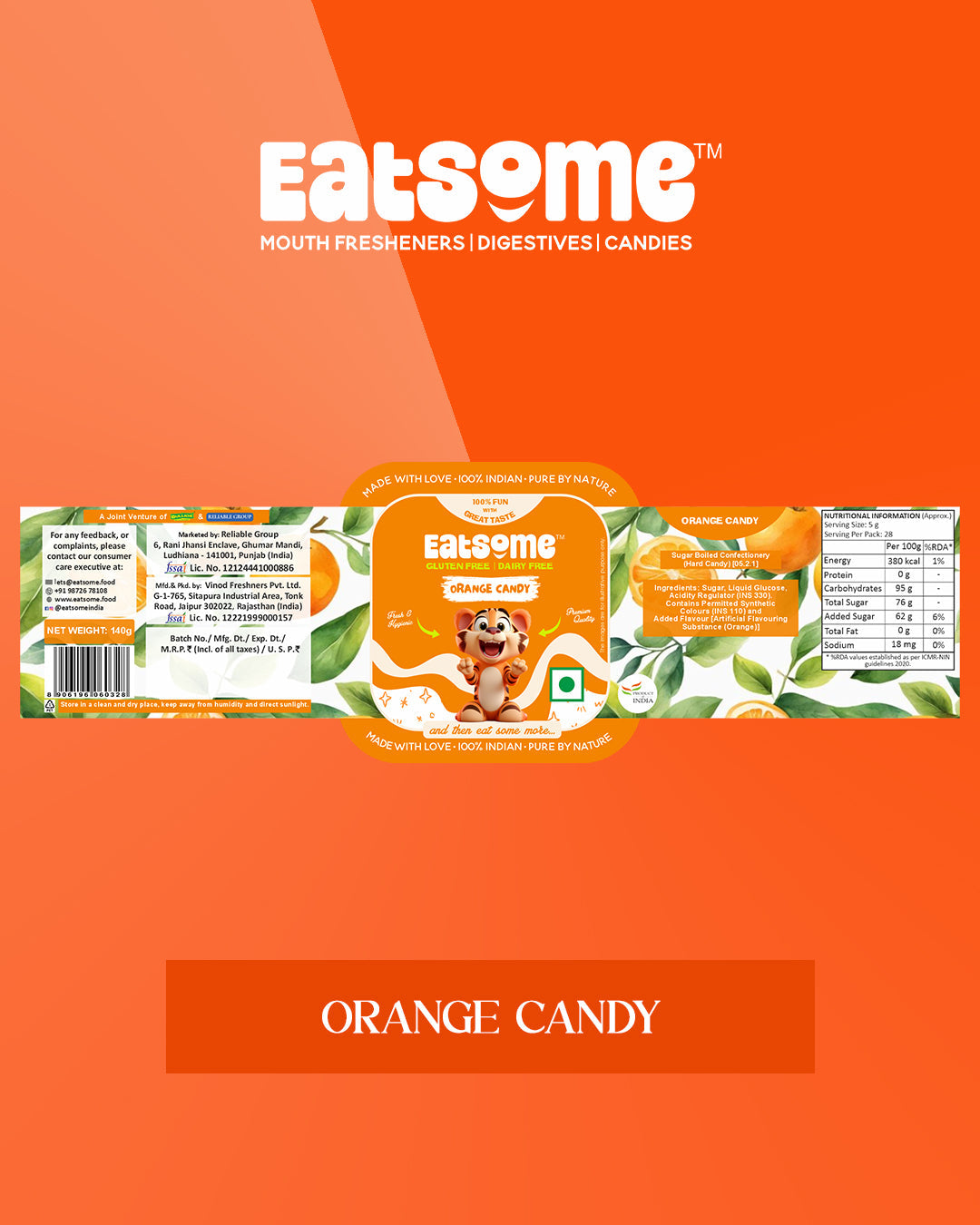 Get ready to relive those carefree childhood moments with EATSOME Orange Candy !! Each candy is a perfect mix of sweet Sugar and the tangy kick of Orange, creating a flavor explosion that will take you back to your favorite memories. Pop one in your mouth, and let the zesty orange goodness bring a smile to your face while satisfying your sweet cravings. Whether you're at a party, with friends, or just craving something delightful, this candy is sure to add a burst of happiness to any moment. Orange-liciously sweet, it's exactly what your taste buds have been waiting for! So go ahead, enjoy the magic – anytime, anywhere!